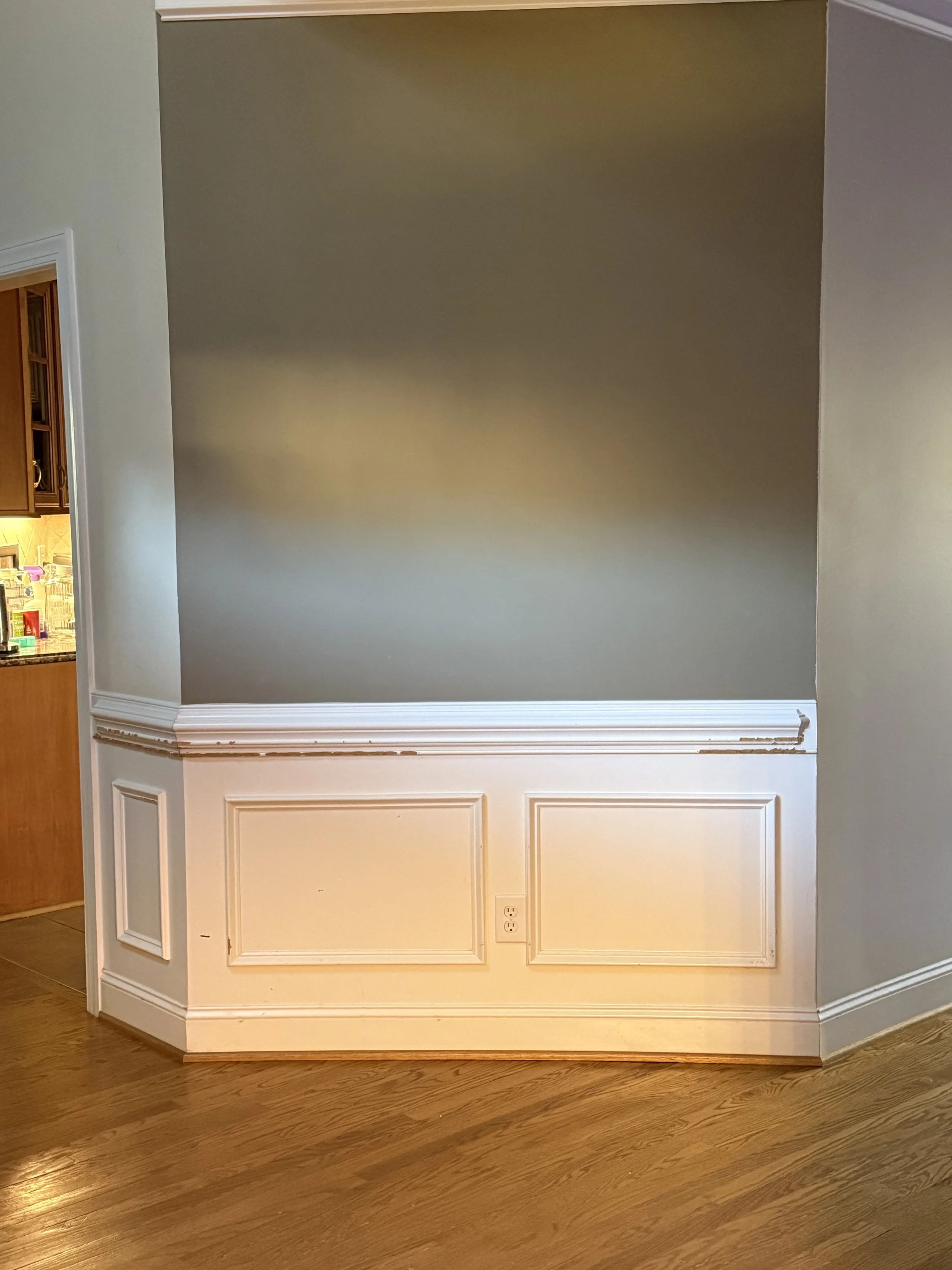 My Client was Interested in updating the Trim in their dining room and entrance way. The Old trim had been outdated and had some damage done from their pets. They knew it was time for some change.
